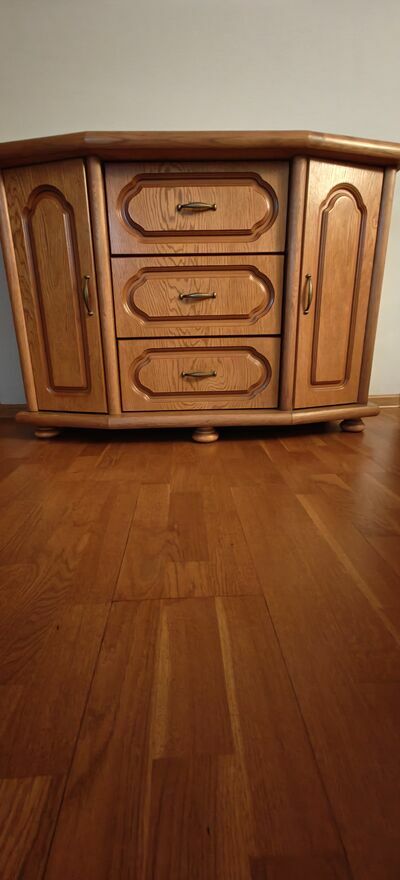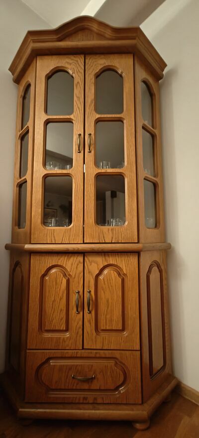 Sprzedam meble do salonu; 2 witryny rogowe i komodę.Witryny jak nowe ,nie uszkodzone i nie mające żadnych śladów użytkowania natomiast komoda ma kilka przebarwień i trochę niewidocznych śladów użytkowania.